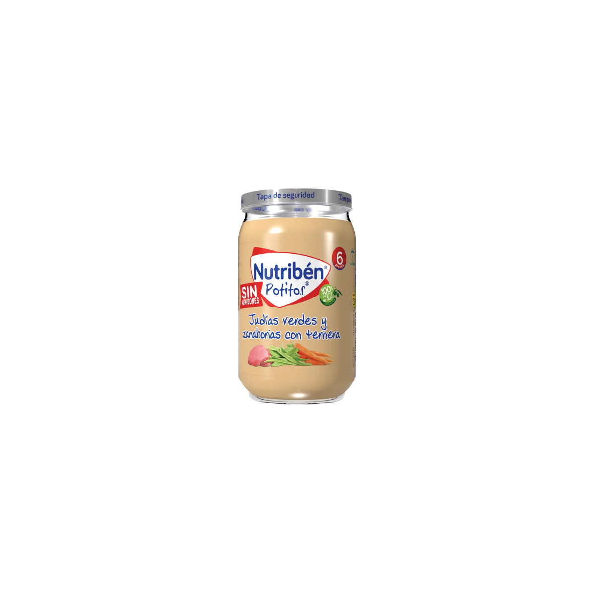 Este potito de Nutribén a base de judías verdes, tomate, zanahoria, arroz, guisantes y cebolla, están elaborados para alimentar a tu bebé a partir de los 6 meses. Nuevo formato con boca ancha y elaborado con 100% aceite de oliva virgen extra. Los potitos Nutribén aportan más energía y menos agua que los purés caseros y están sometidos a una gran cantidad de controles de calidad. Sin gluten, sin huevo y sin leche. Tampoco contiene sal añadida.